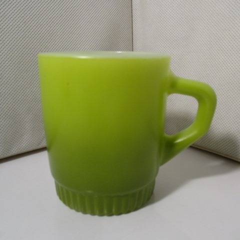 | 在庫状況 | 在庫あり | <詳細> 黄緑・緑色のリブボトムマグです。 ・外側側面に製造時からの極僅かな着色がありますが気にならない程度です。 |