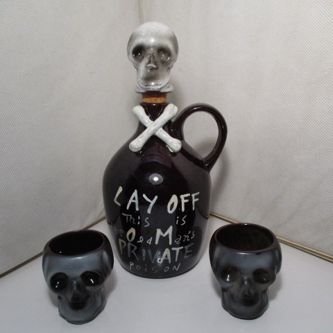 | 在庫状況 | 在庫あり | <詳細> スカルモチーフのポイズンボトル:デカンタとショットグラス2個のセットです。 陶器 日本製 ・割れや欠けはありません。 ・僅かなキズ、ペイントロス、汚れ等はありますが大きなダメージはありません。 |