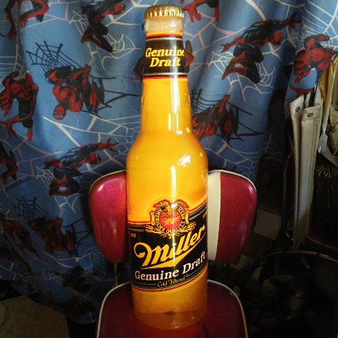 | 在庫状況 | 在庫あり | <詳細> ビンテージのMillerのビールボトル型ライトです。 コンセントを入れると内部の電球2個が点灯します。 ボトル、裏面ベースはプラスティック製です。 ・若干の擦れ、汚れ、キズ、テープの糊跡等がありますが目立つものではありません。 ・ボトル右下角にクラックがありますが強度に全く問題はなく、目立つものではありません。 |