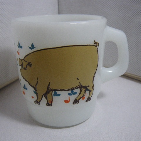 | 在庫状況 | 在庫あり | <詳細> ファニーピッグのモチーフマグです。割れ、欠けなく、艶もあり使用感もほとんどありません。 ・ボトムに僅かな着色がありますが気にならない程度です。 ・外側側面に製造時からの極僅かな着色がありますが気にならない程度です。 ・ハンドル下のボトム縁に劣化線がありますが気にならない程度です。 |