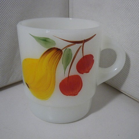 | 在庫状況 | 在庫あり | <詳細> ゲイファッド フルーツのスタッキングマグです。使用感はほとんどありません。 ・赤いチェリーのプリントに僅かな色褪せとロスがありますが気にならない程度です。 ・外側側面に極僅かな着色がありますが気にならない程度です。 ・リムに極僅かなフリーバイト、内側に1箇所約2mm程度のチップがありますが使用に問題なく気にならない程度です。 |
