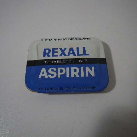 古い年代の薬:REXALLのパッケージ缶です。